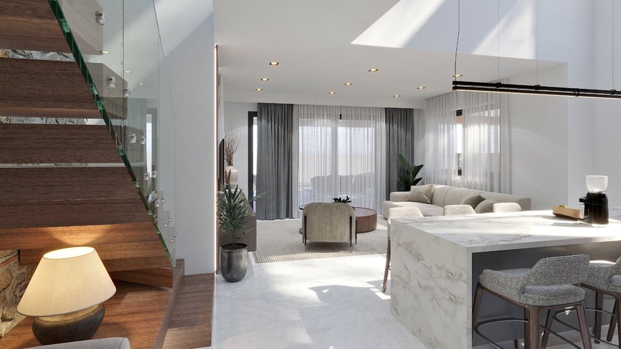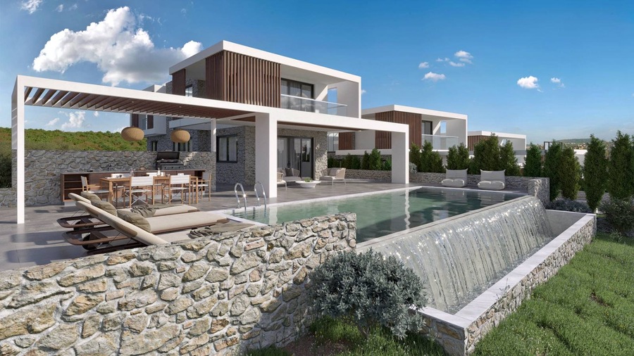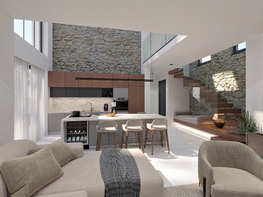 Outdoor living is a defining feature, with generous terraces ideal for relaxing and entertaining, partially shaded by pergolas for comfort during the high season. The villas will be finished with natural stone feature walls, blending in harmoniously with the traditional surroundings while offering a contemporary, high-quality aesthetic.