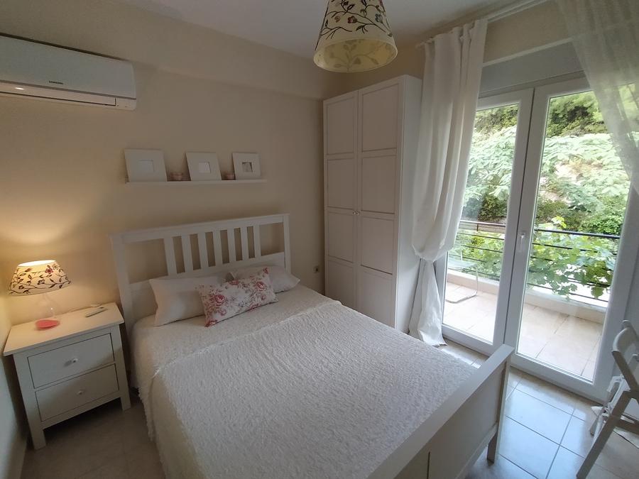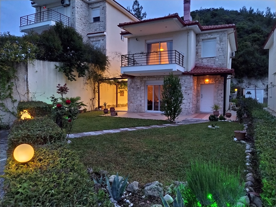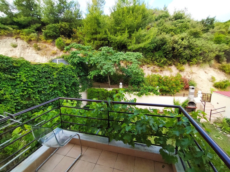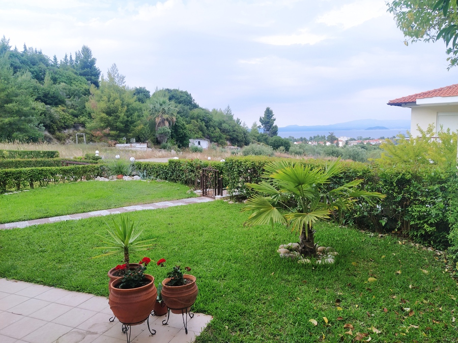 From the front aspect, the house benefits from a stunning easterly sea view overlooking Mount Athos and is located in a quiet, easily accessible area, despite being in a very popular resort. The centre of Hanioti can be reached on foot in approximately 10–15 minutes, making it an excellent holiday home without the noise and congestion of the busiest streets.